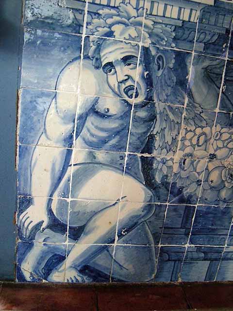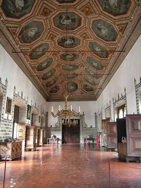 天井いっぱいにカササギが描かれたカササギの間、たくさんの白鳥がポーズをとっている白鳥の間、そして、一番すばらしかったのが、紋章の間です。ここは壁がいろいろなモチーフを描かれたタイルで作られていて、タイルだからなのか、制作者の好みなのか、はたまた当時のはやりだったのか、変な顔の絵もたくさんあります。
